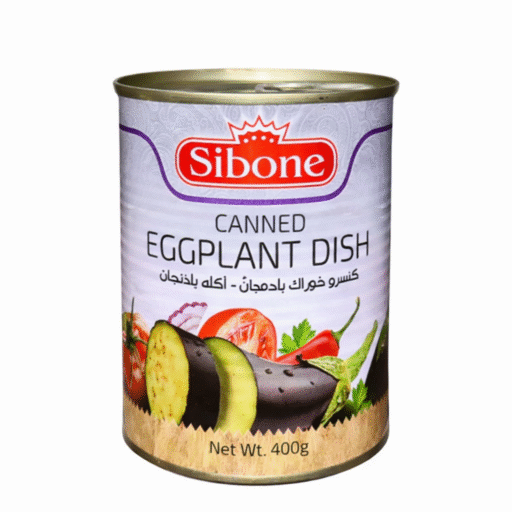 کنسرو خوراک بادمجان سیبون, Khorak Bademjan, fully cooked and ready-to-eat. tender eggplant with authentic seasoning in a convenient can.