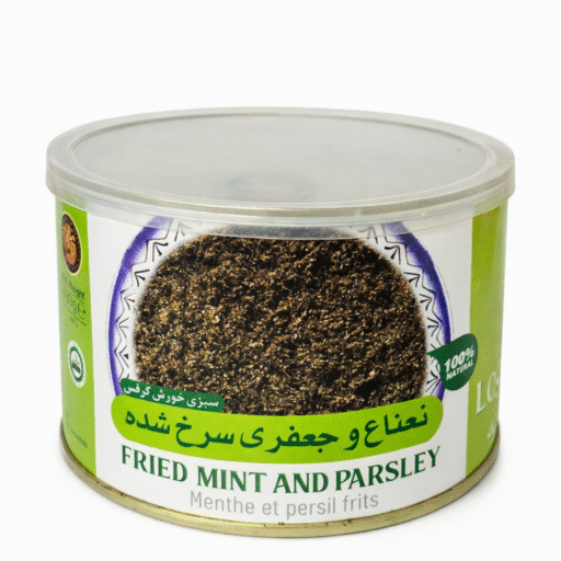 کنسرو نعنا و جعفری سرخ شده, Conserv Nana o Jafari, ready-to-use herbs for cooking, stews, and traditional dishes.