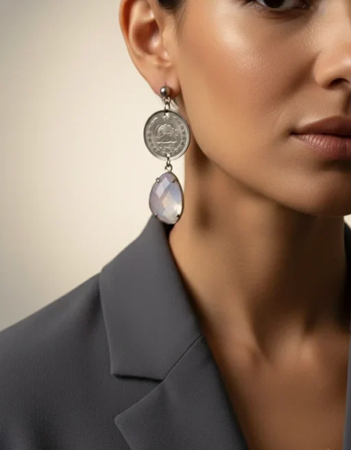 Vintage Coin Earrings with Crystal Drop, Stainless steel anti-allergy earrings. perfect as a cultural and artistic gift.