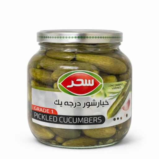 خیارشور درجه یک Ø³ØØ±, Khiyarshour Daraje 1, tangy and ready-to-eat for meals, sandwiches, and snacks.