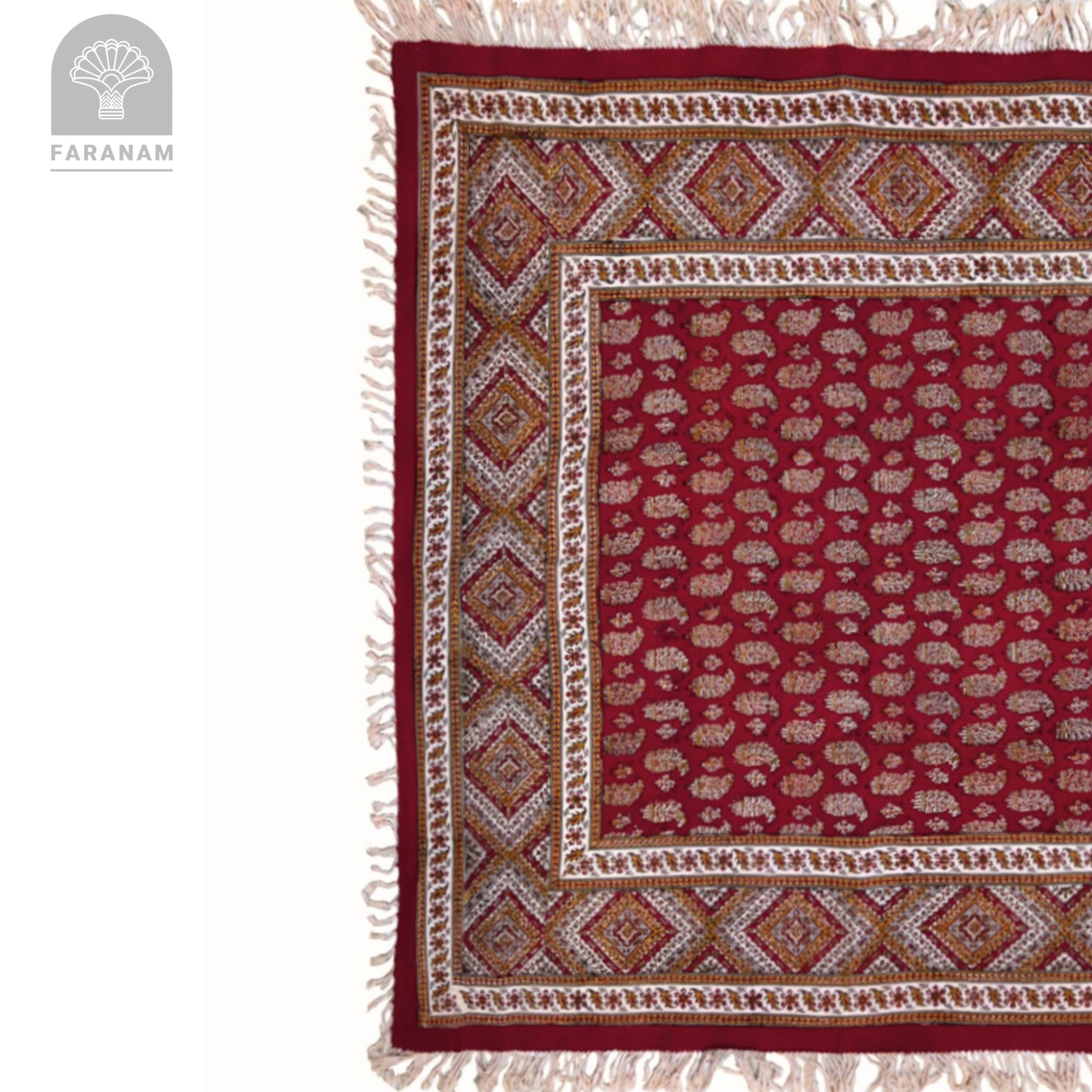 Red Ruby Ghalamkar Tablecloth, 100% Cotton, 100×100 cm