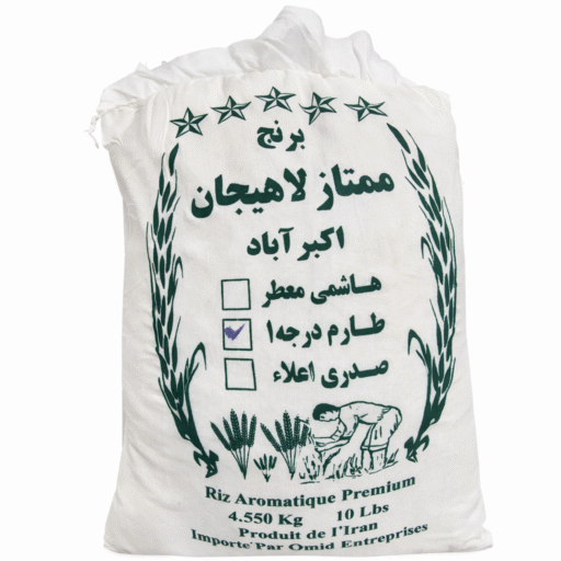 Premium Tarom Rice – Berenj Lahijan (10 lb). Naturally aromatic Iranian long-grain rice with fluffy texture and authentic Persian taste. Perfect for everyday cooking and traditional dishes.