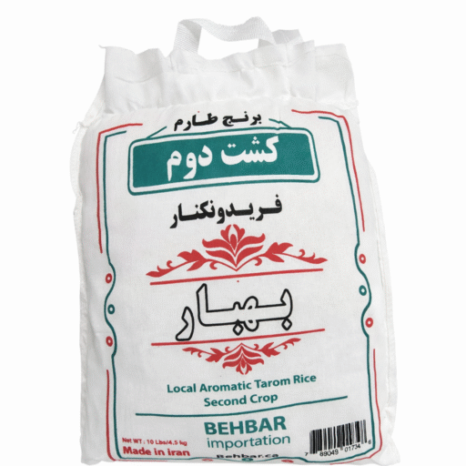 Tarom Rice Second Crop (Kesht Dovom) from Fereydoon Kenar – 10 lb of premium Iranian aromatic rice with fluffy texture and rich Persian flavor.