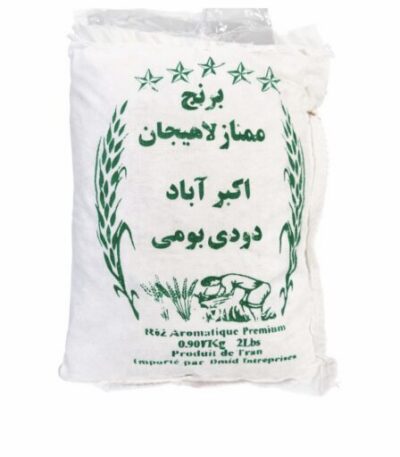 34.50$برنج هاشمی اکبرآباد – برنج دانهبلند و خوشعطر ایرانی از مزارع لاهیجان، بسته ۱۰ پوندی